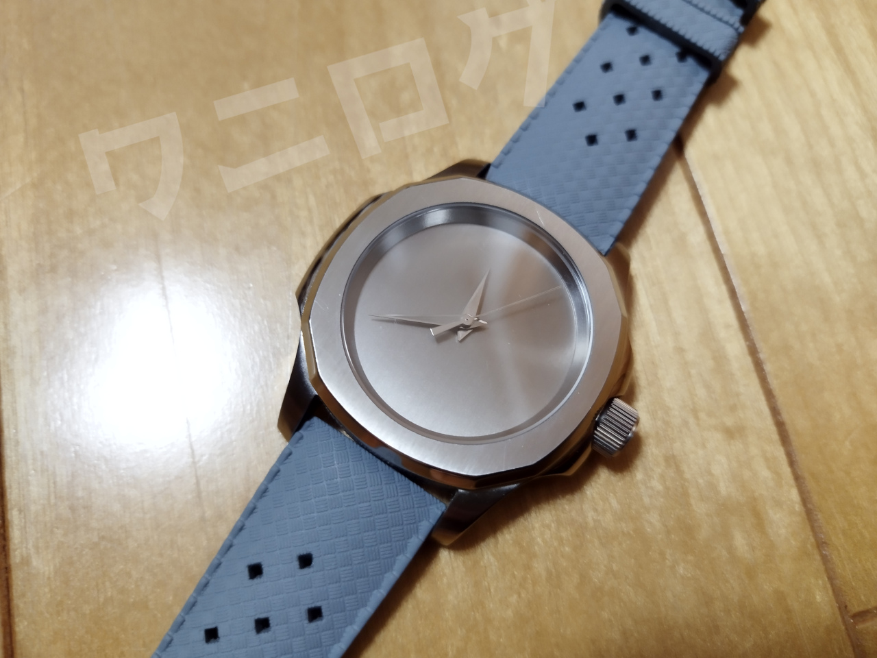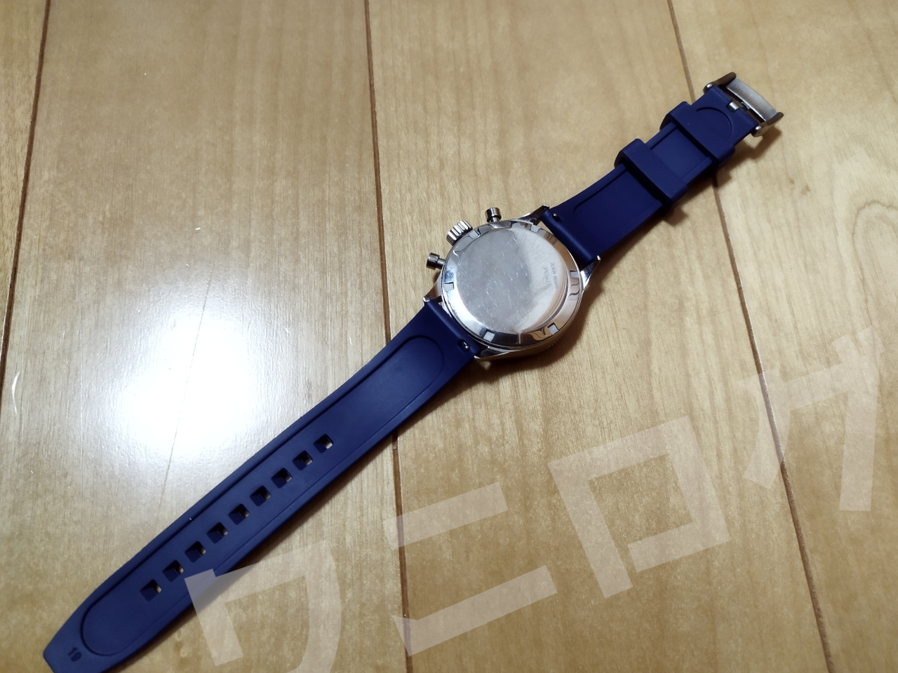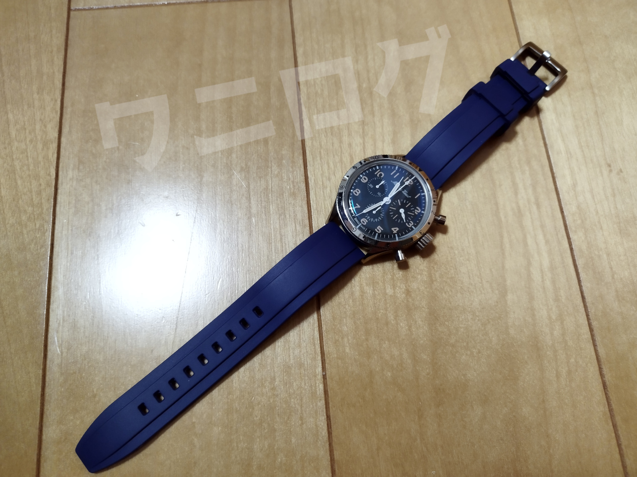 ネイビーにした理由は、ちょっと色で遊んでみたかった。すでにコーナスウォッチのほうで散々ブラックのラバーベルトを装着して若干飽きてたので、色を欲してたんです。