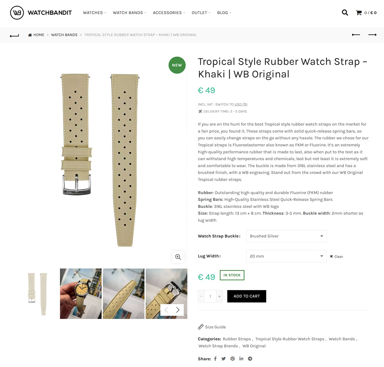 コーナスウォッチ用にグレーのラバーベルト