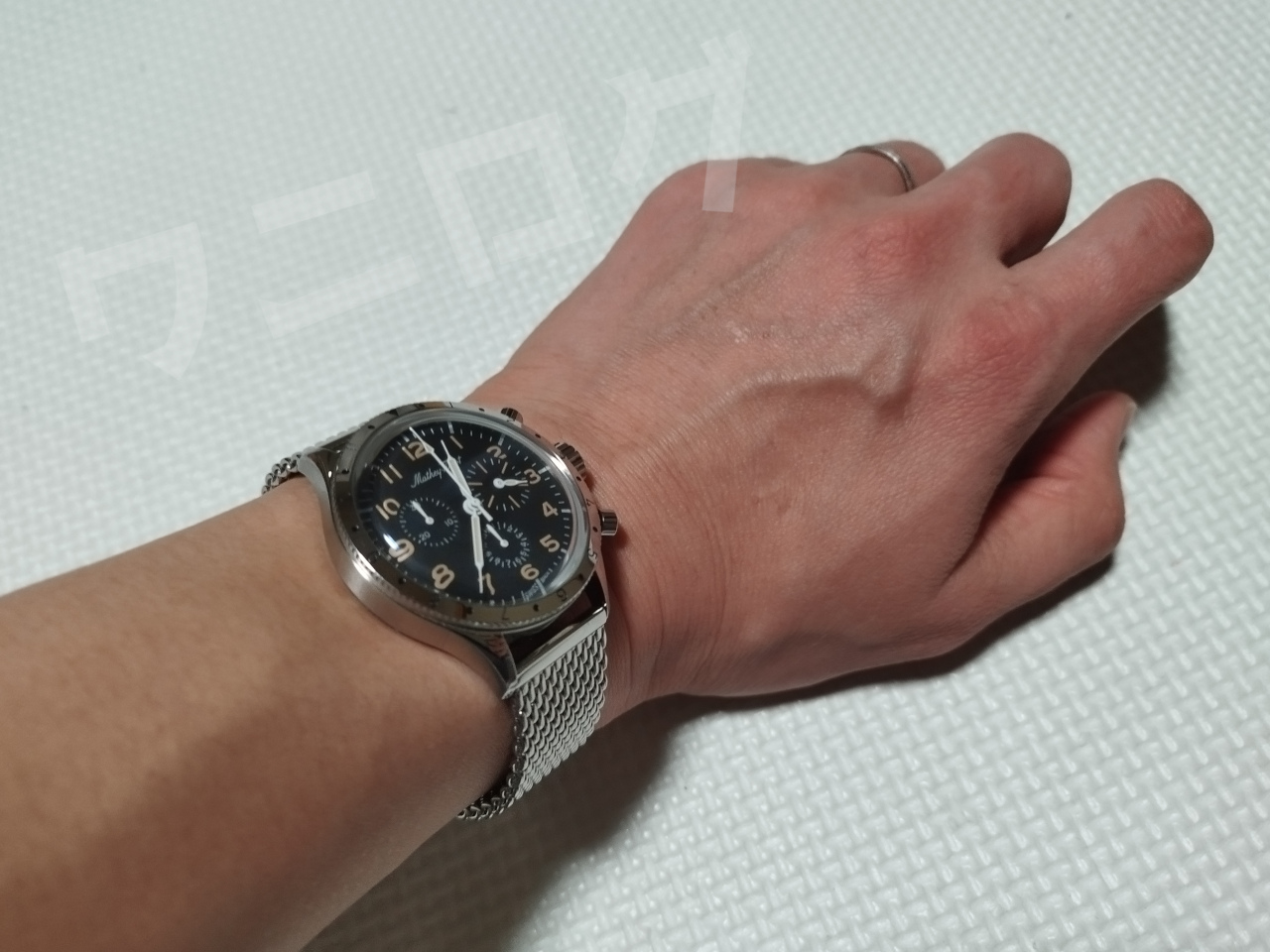 文字盤がごちゃごちゃしてるお陰で、ミラネーゼが目立たなくなって女っぽさが消えてるんだ。