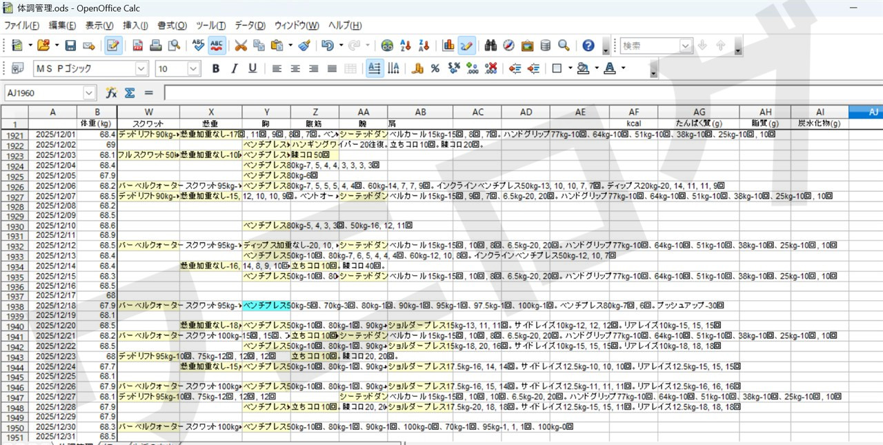 【筋トレ第二章】1年2ヶ月目の体重記録